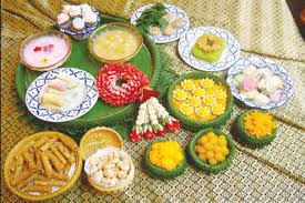ขนมไทยที่ใช้ในงานประเพณี และศาสนา : ขนมไทยในกลุ่มนี้จะสอดแทรกอยู่ ในงานประเพณีต่างๆ รวมถึงงานบุญทางศาสนาด้วย ตัวอย่างเช่น ในประเพณีปีใหม่ ของไทย (วันสงกรานต์) นอกจากมีการทำบุญตักบาตร รดน้ำดำหัวแล้ว คนไทยใน สมัยโบราณนิยมทำขนม กาละแมร์ และข้าวเหนียวแดงเพื่อถวายพระและแจกจ่ายให้เพื่อนบ้านอีกด้วย นอกจากนั้น ในช่วงวันสารทไทย ก็มักจะนิยมทำขนม “กระยาสารท” เพื่อทำบุญ รำลึกถึงบรรพชนที่ล่วงลับไปแล้ว โดยจะตักบาตรด้วยกระยาสารทที่ตัดเป็นชิ้นๆแล้ว ห่อด้วยใบตองคู่กับกล้วยไข่เป็นของแกล้มกัน